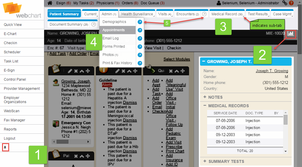 The following items can be seen throughout MIE systems. Here, a patient chart is used for identification.