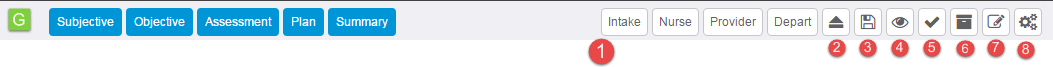 - Note complete button: Used for taking a note on a patient; saves and closes the note.